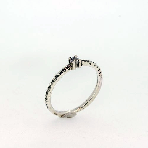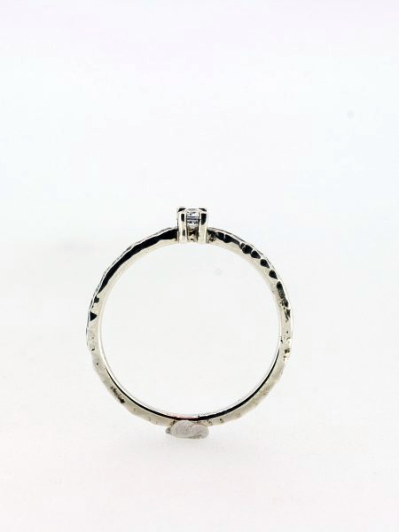 De Ring Birch – 14kt Witgoud met 0,10 ct Diamant is gemaakt voor creatieve geesten die durven op te vallen. Deze handgemaakte 14kt gouden sieraad heeft een interessante, organische structuur die het ontwerp een artistieke uitstraling geeft. De klassieke zetting voegt een tijdloos accent toe aan de gedurfde vorm, waardoor het sieraad een perfecte balans biedt tussen ruw en elegant.