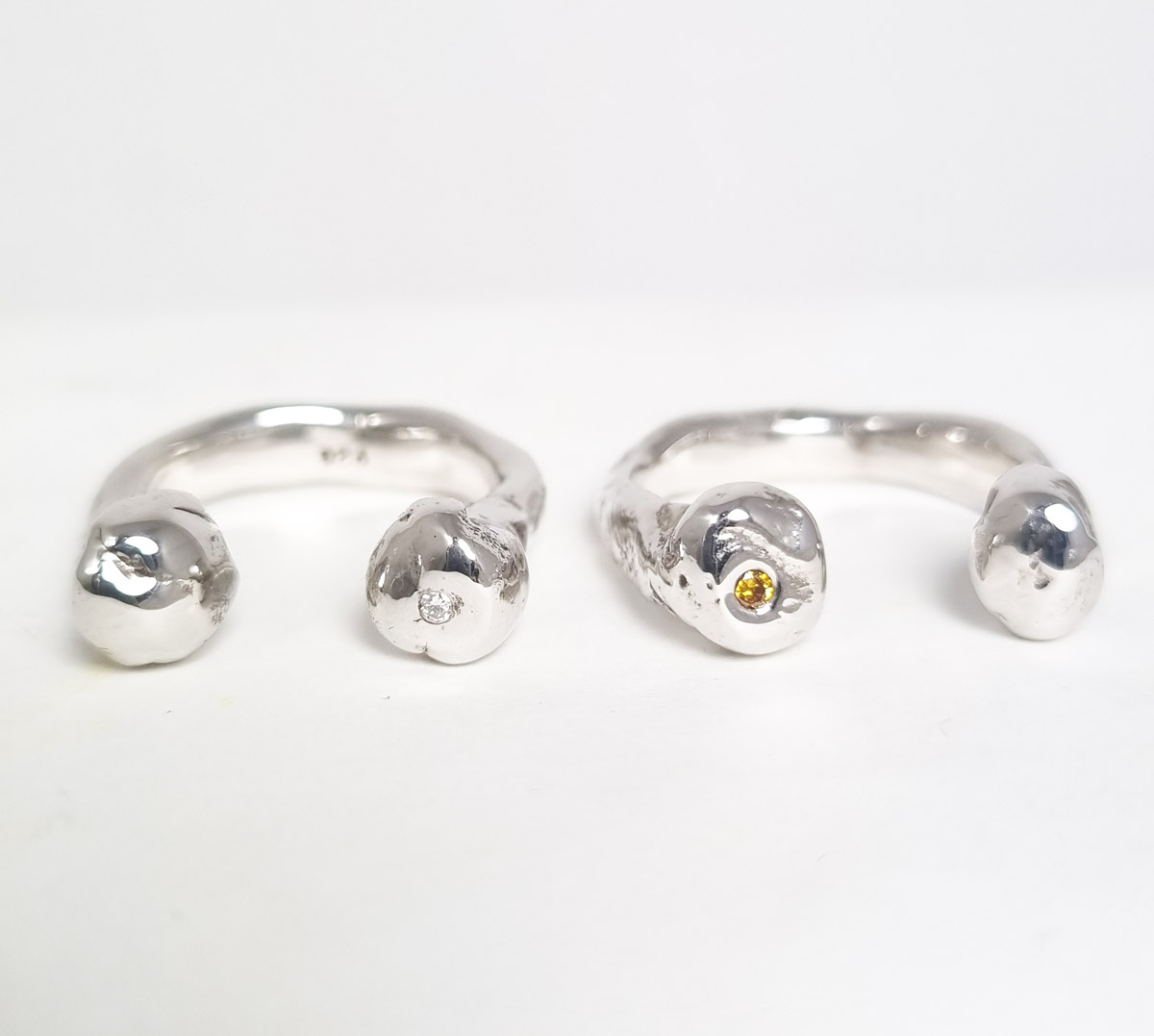 Elke sieraad wordt met de hand vervaardigd in het atelier en zorgvuldig afgewerkt tot een hoogglans resultaat, waarbij 0,03 ct diamant een vleugje schittering toevoegt aan het moderne, minimalistische design.